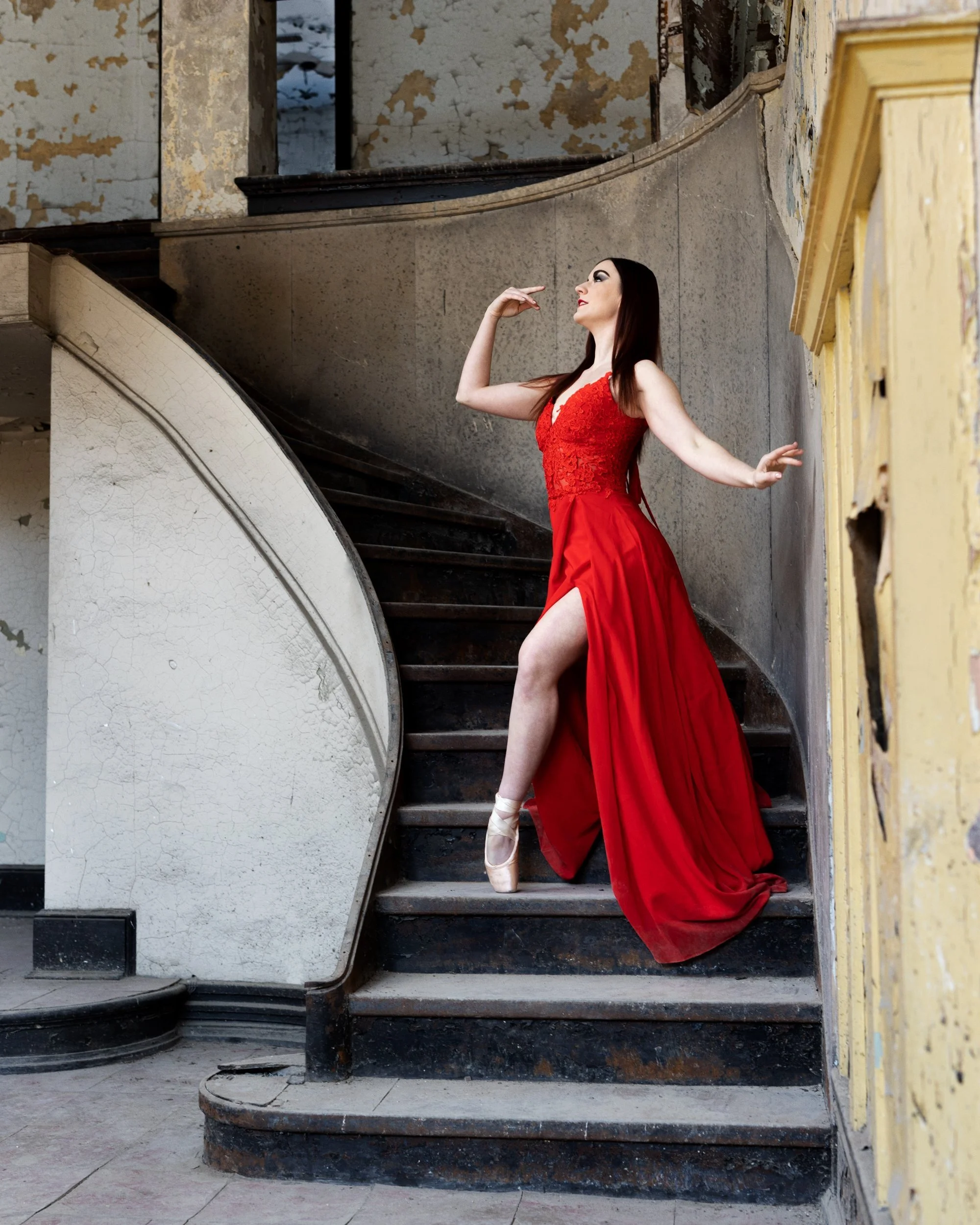 Ballet Dancer Portrait shot on rustic staircase chicago